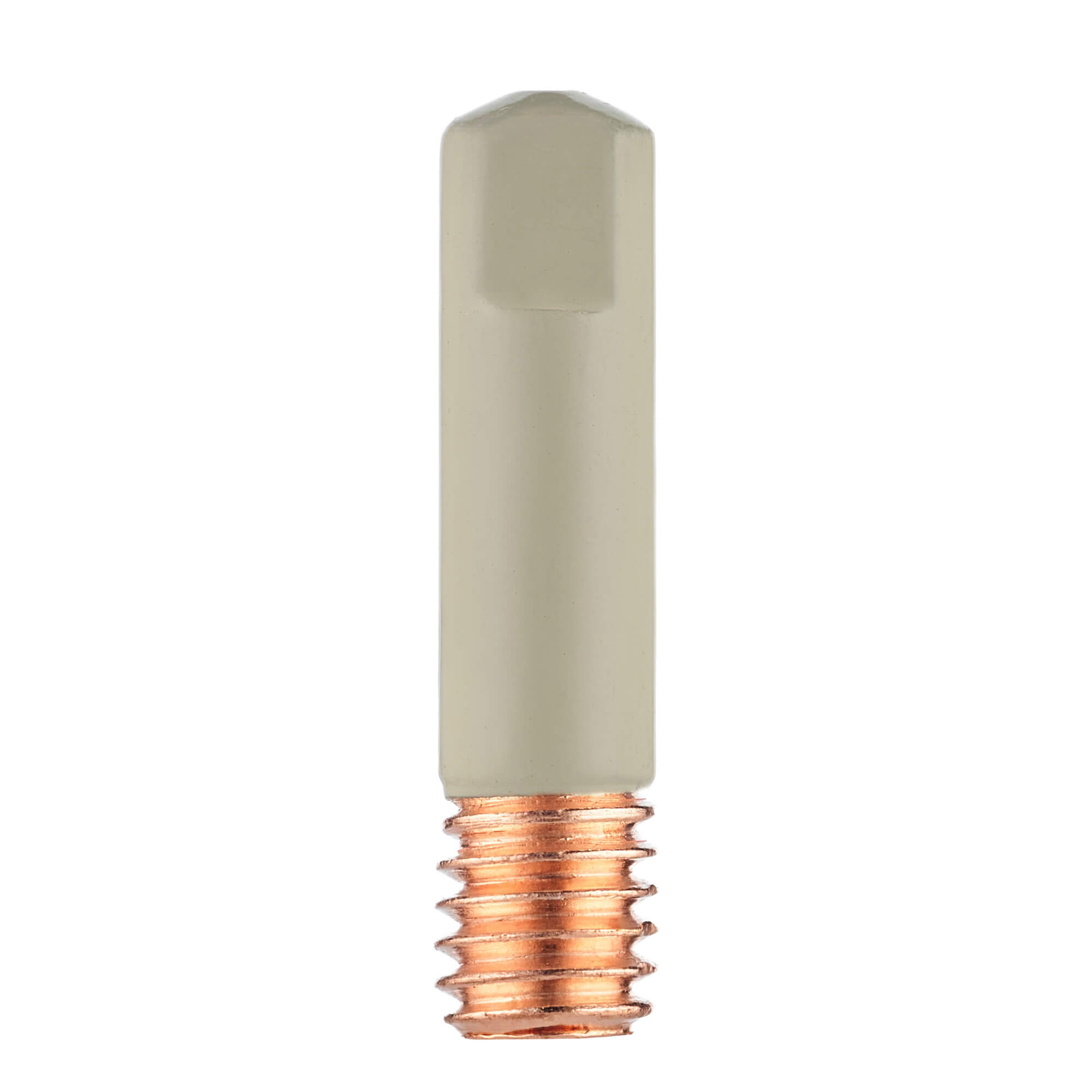 Прямой сварочный наконечник M6 с керамическим покрытием для полуавтоматических горелок MIG MP 15 и МАСТЕР MIG MP 15. Используется для проволоки диаметром 1,0 мм.Наконечник изготовлен из меди (E-CU), сверху нанесён керамический слой, который работает как электрический и термический изолятор поверхности.Керамическое покрытие наносится специальным технологическим процессом, образуется гомогенный ровный слой, рассчитанный на промышленную эксплуатацию такого газораспределительного сопла. Керамический слой состоит из броннитрида (бор нитрид, BN).Отличительная особенность прямого наконечника CRM6510-10 – это керамическое покрытие:Керамическое покрытие создаёт термобарьер, так как керамика выдерживает очень высокие температуры, не расплавляется и не деформируется.Покрытие препятствует прилипанию сварочных брызг за счёт очень гладкой поверхности. Брызги либо отскакивают, либо слабо держатся и легко счищаются.Из-за отсутствия налипших брызг металла формируется более стабильный газовый поток и дуга. Увеличивается продолжительность работ без остановки и последующей очистки комплектующих.Керамический слой заметно увеличивает ресурс наконечника. Использование комплектующих с керамическим покрытием снижает затраты на обслуживание и расходные материалы.Область применения наконечников с керамическим покрытием:Узкощелевое сваривание труб, толстых стенок. Орбитальная сварка, где сопло или наконечник может задеть стенку свариваемого изделия. В таком случае керамическое покрытие выступает в роли диэлектрика, защищает от коротких замыканий, снижает риск «поджигания» дуги по боковой стенке и медных включений в металл шва.Сварка порошковой проволокой, где нужно увеличить токи и скорость без потери качества корня.Автоматизированные линии и роботизация, где критичны длительные остановки рабочего процесса и присутствует минимальное обслуживание сварочных горелок.