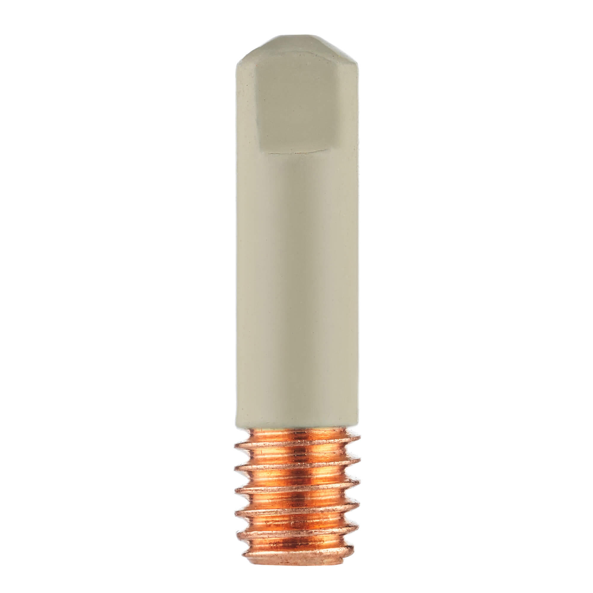 Прямой сварочный наконечник M6 с керамическим покрытием для полуавтоматических горелок MIG MP 15 и МАСТЕР MIG MP 15. Используется для проволоки диаметром 1,2 мм.Наконечник изготовлен из меди (E-CU), сверху нанесён керамический слой, который работает как электрический и термический изолятор поверхности.Керамическое покрытие наносится специальным технологическим процессом, образуется гомогенный ровный слой, рассчитанный на промышленную эксплуатацию такого газораспределительного сопла. Керамический слой состоит из броннитрида (бор нитрид, BN).Отличительная особенность прямого наконечника CRM6510-12 – это керамическое покрытие:Керамическое покрытие создаёт термобарьер, так как керамика выдерживает очень высокие температуры, не расплавляется и не деформируется.Покрытие препятствует прилипанию сварочных брызг за счёт очень гладкой поверхности. Брызги либо отскакивают, либо слабо держатся и легко счищаются.Из-за отсутствия налипших брызг металла формируется более стабильный газовый поток и дуга. Увеличивается продолжительность работ без остановки и последующей очистки комплектующих.Керамический слой заметно увеличивает ресурс наконечника. Использование комплектующих с керамическим покрытием снижает затраты на обслуживание и расходные материалы.Область применения наконечников с керамическим покрытием:Узкощелевое сваривание труб, толстых стенок. Орбитальная сварка, где сопло или наконечник может задеть стенку свариваемого изделия. В таком случае керамическое покрытие выступает в роли диэлектрика, защищает от коротких замыканий, снижает риск «поджигания» дуги по боковой стенке и медных включений в металл шва.Сварка порошковой проволокой, где нужно увеличить токи и скорость без потери качества корня.Автоматизированные линии и роботизация, где критичны длительные остановки рабочего процесса и присутствует минимальное обслуживание сварочных горелок.