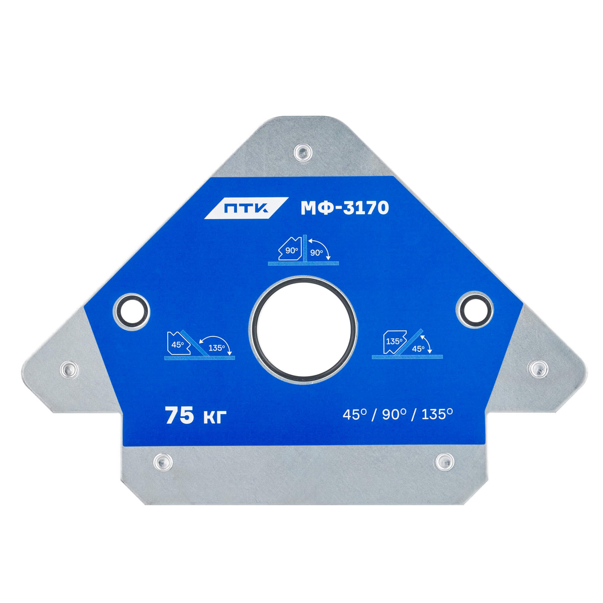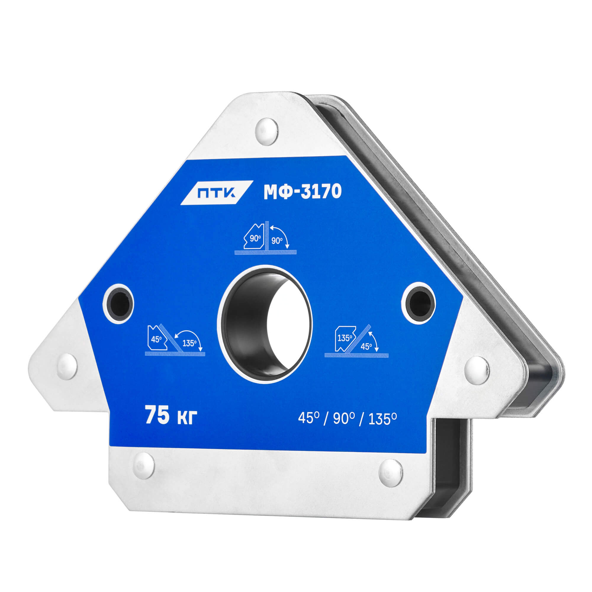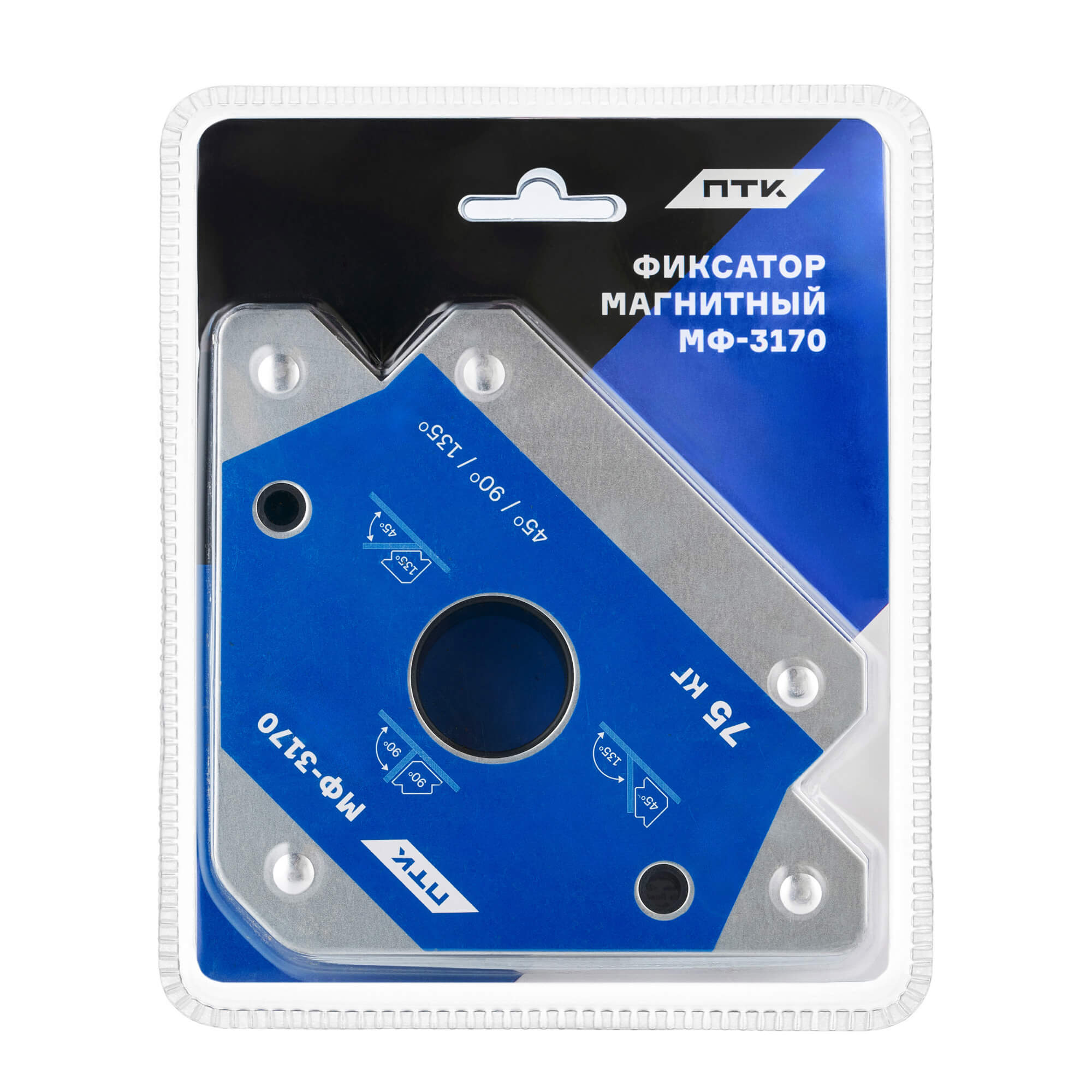 Магнитный фиксатор МФ-3170 позволяет производить точное выставление углов при сварке, пайке и при монтаже конструкций. Фиксатор изготовлен из сплава, который устойчив к высоким температурам.Особенности фиксатора магнитного МФ-3170:Максимальная масса удерживаемого изделия – 75 кг.Возможные углы удерживания деталей – 45°, 90° и 135°.Поставляется в индивидуальной блистерной упаковке.Обратите внимание, что изделие предназначено для фиксации металлоконструкций перед сваркой и не является точным измерительным средством.