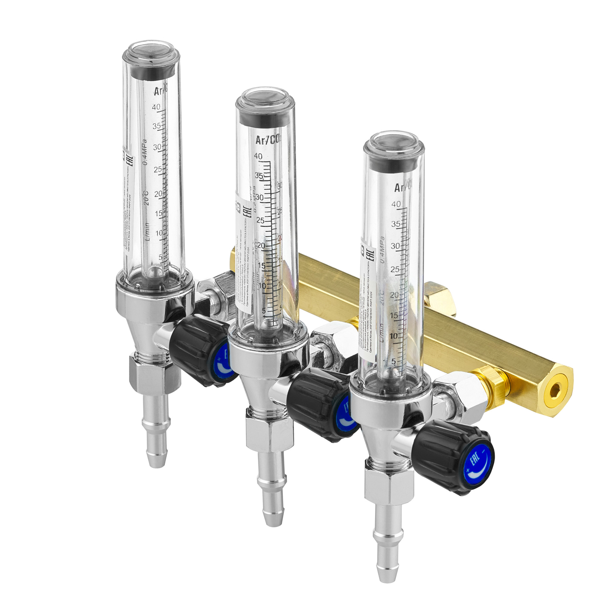 Газовый коллектор низкого давления КГ-3-01 предназначен для распределения газа от одного редуктора (регулятора расхода газов) на три потребителя. Оснащен тремя штуцерами, расположенными в одну линию, что обеспечивает удобное и компактное подключение.Коллектор позволяет организовать индивидуальный расход газа на каждом выходе при использовании одинарных ротаметров. При необходимости возможен отбор газа через один, два или все три выхода одновременно. Коллектор выполнен из алюминия с анодным оксидированием.Важно! Ротаметры в комплект поставки не входят. Для работы с коллектором используются одинарные ротаметры (гайка M16х1,5), которые приобретаются отдельно. Коллектор КГ-3-01 подходит для работы со следующими газами:Кислород - от медицинского кислородного редуктора (для трех пациентов с разным расходом);Аргон - от аргонового редуктора (для трех сварочных постов TIG сварки);Углекислый газ (CO₂) - от углекислотного редуктора (для трех постов MIG сварки);Азот (сжатый воздух) - на три потребителя;Сварочные газовые смеси - от регулятора баллона на три сварочных поста.Комплектация:Коллектор газовый КГ-3-01 в сборе – 1 шт.